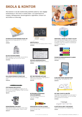 mappar, häftapparater, planeringstavlor, tejphållare, notisar och
